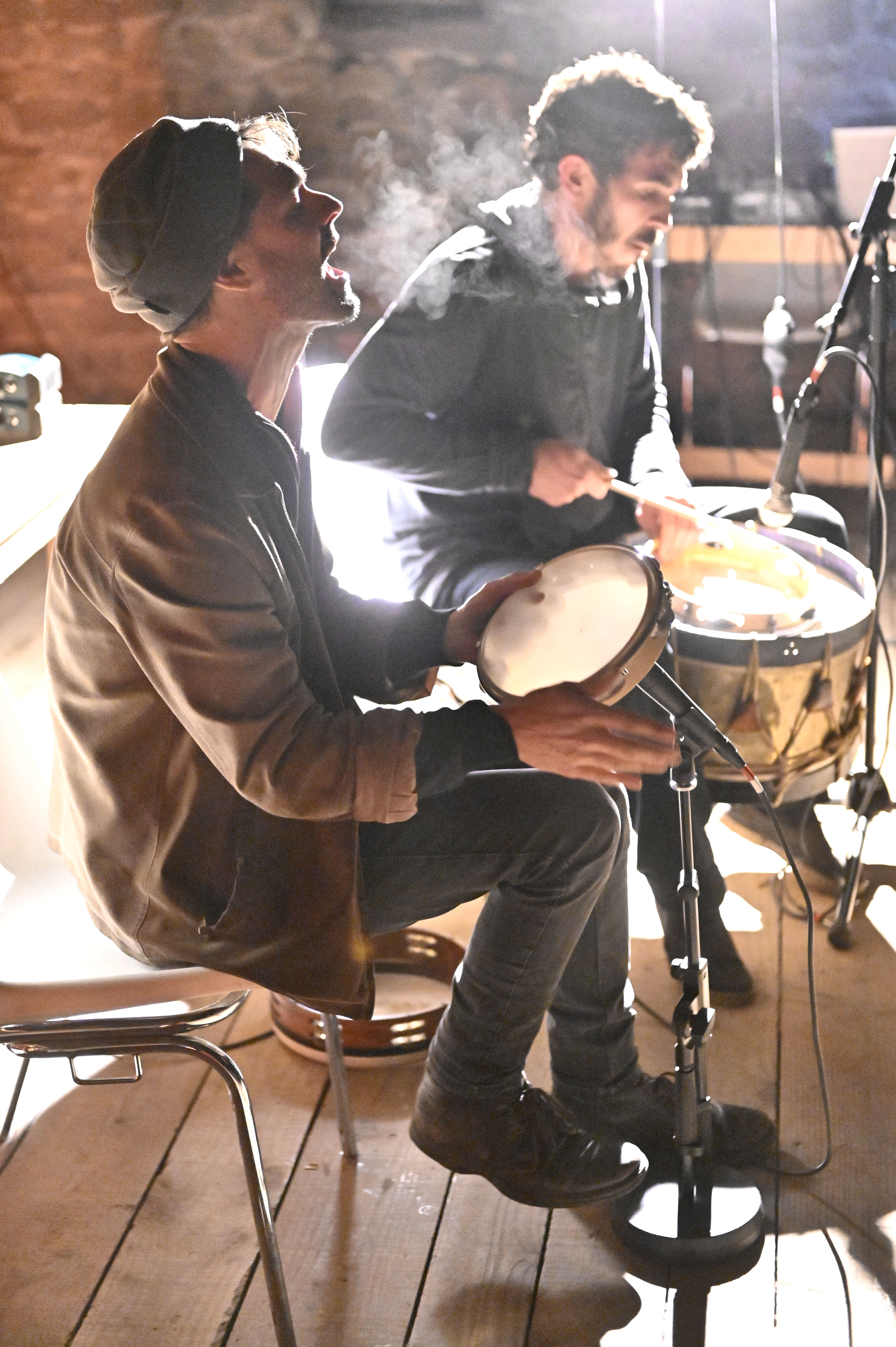 Concert de percussions et chants traditionnels du Nord de l’Italie par Loup Uberto et Lucas Ravinale.